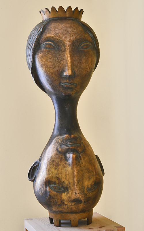Пясочны гадзіннік у форме мужчынскай і жаночай галоў, альбо Кароль і Каралева. Бронза.