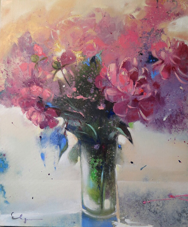 Натюрморт с пионами. 50х40,2017. Холст, масло.
